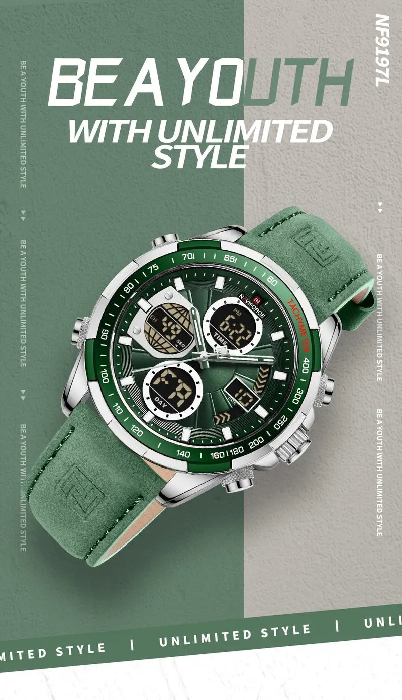 Multi-functional Quartz Men's Watch With Genuine Leather Strap